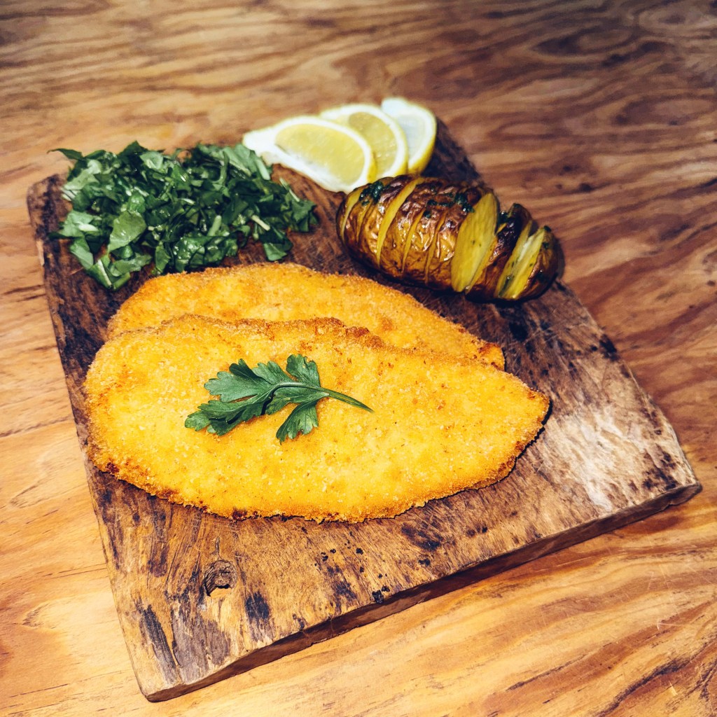 Milanesa de carré de cerdo, preparada con cariño, como en casa. Ideal para combinar con papas fritas, puré o una ensalada.